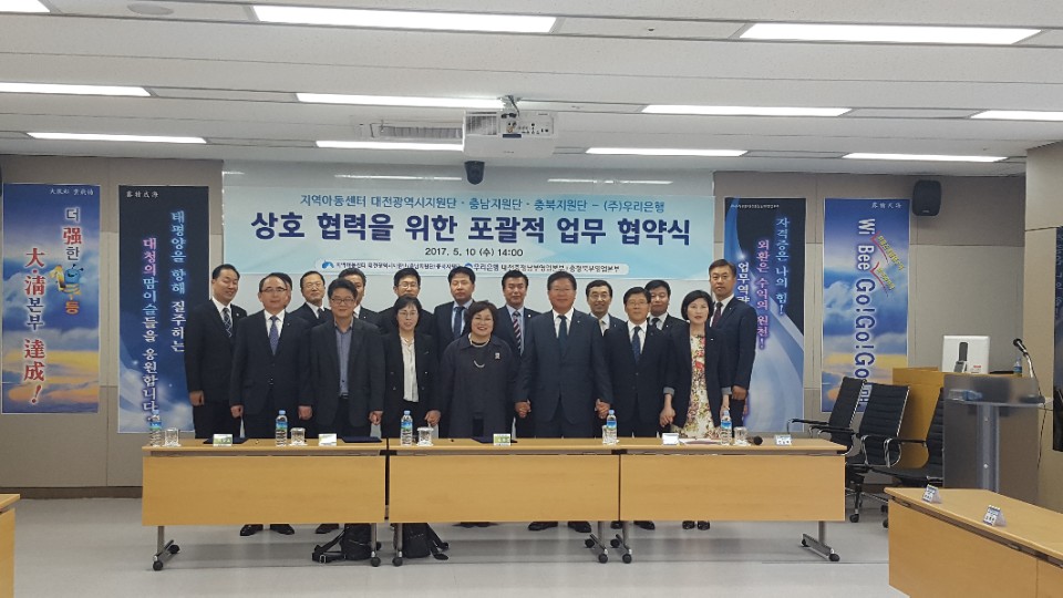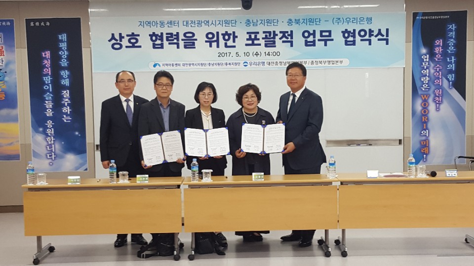 지역아동센터 대전지원단은 5월 10일 우리은행과 상호교류와 협력을 위한 업무협약(MOU)체결했습니다.