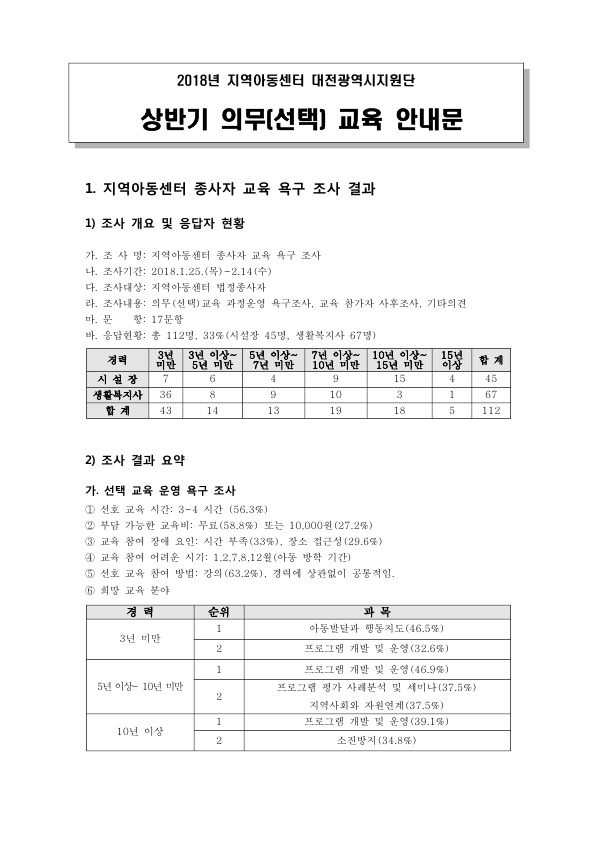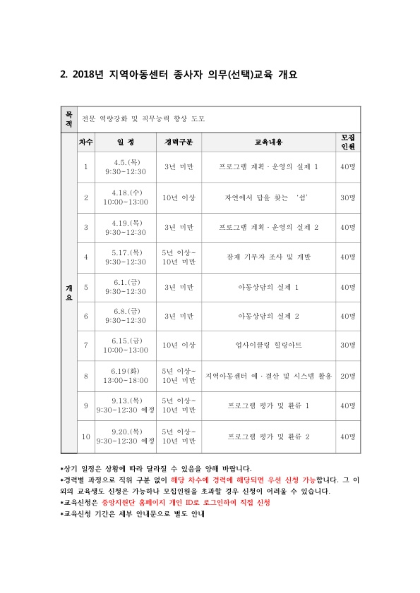 [] 2018년 지역아동센터 상반기 선택교육…
