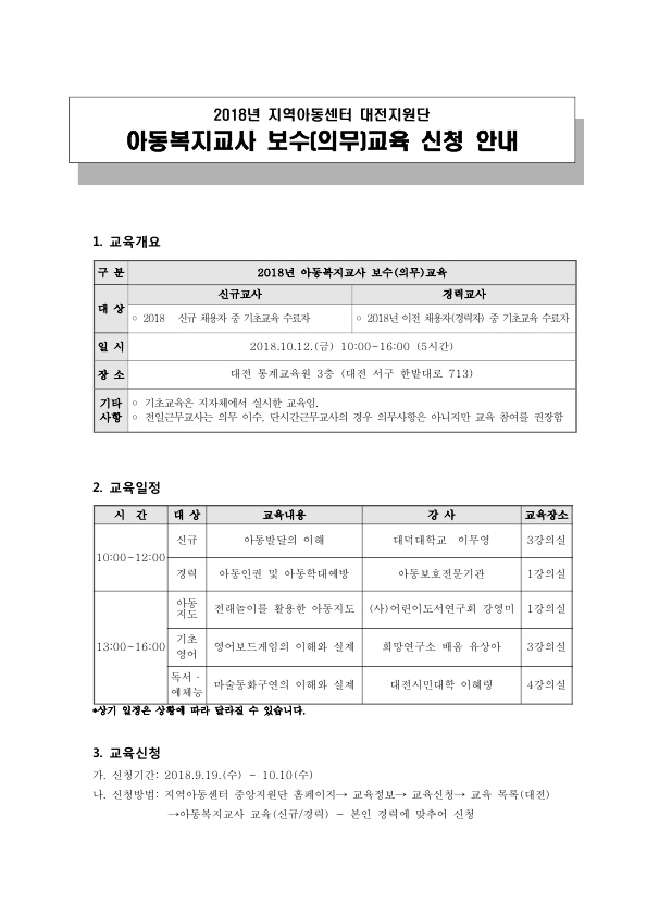 [] 아동복지교사 보수(선택)교육 신청 안내…