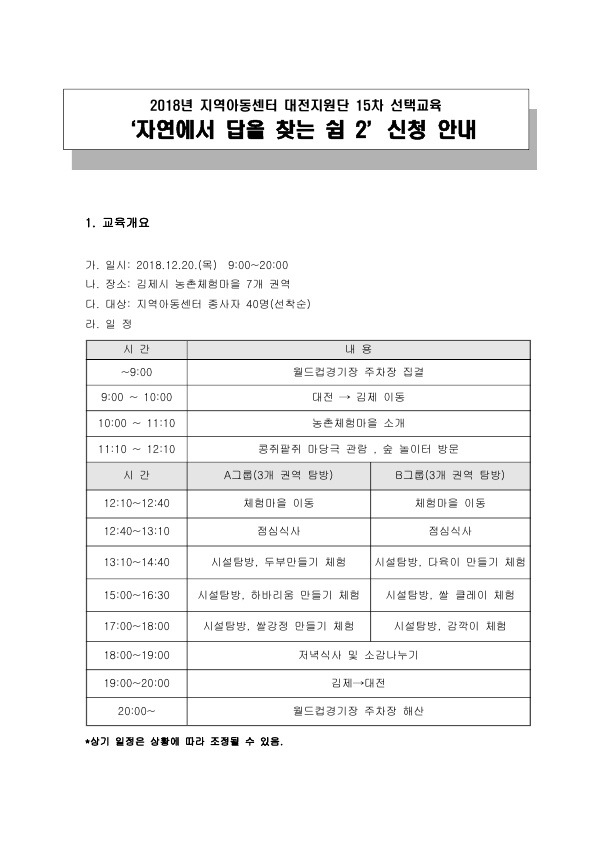[] 2018년 지역아동센터 상반기 선택교육…