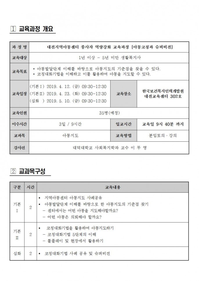 [] 아동복지교사 보수(선택)교육 신청 안내…