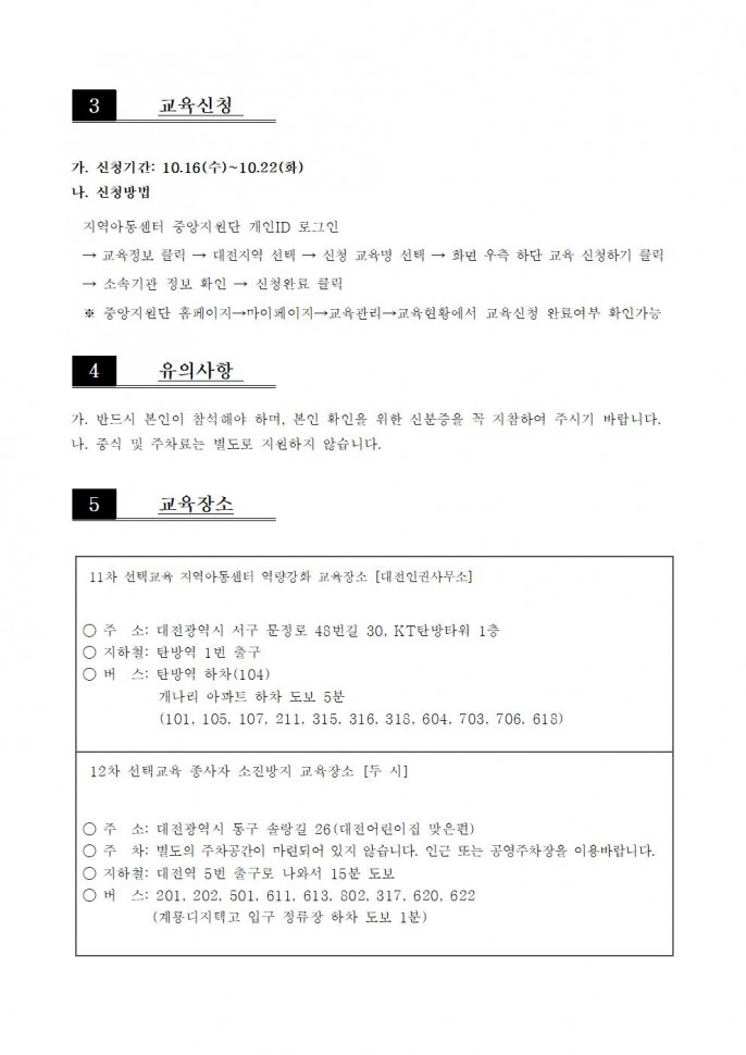 [] [선택] 지역아동센터 종사자 어린이 안전교육…