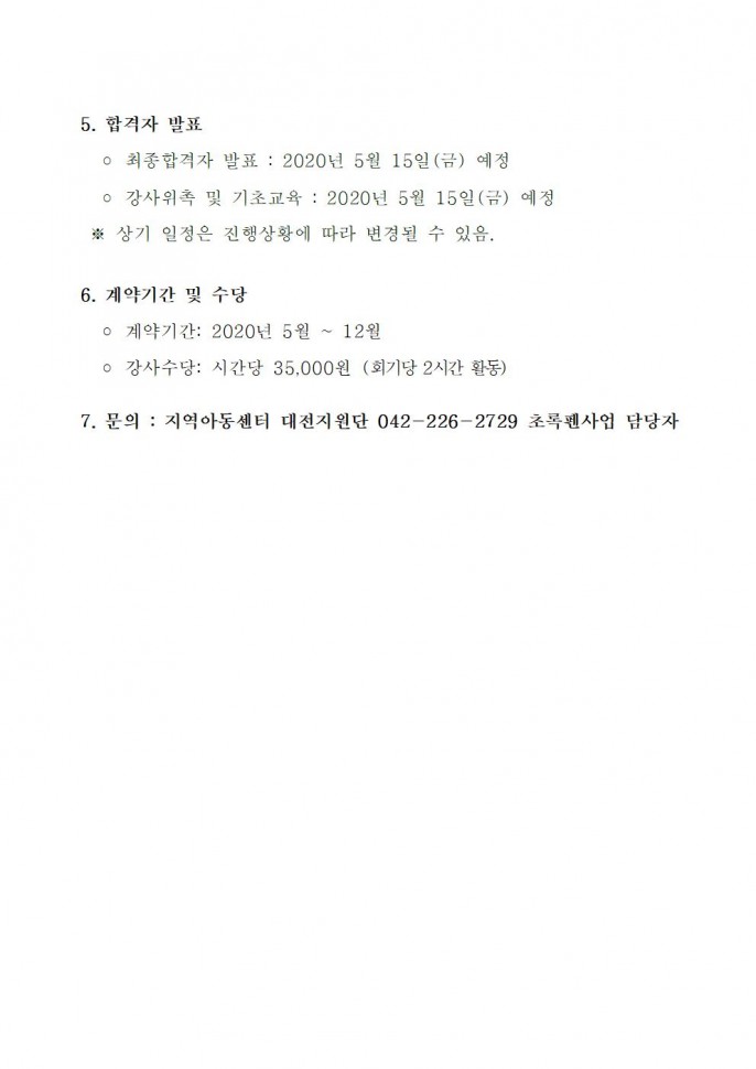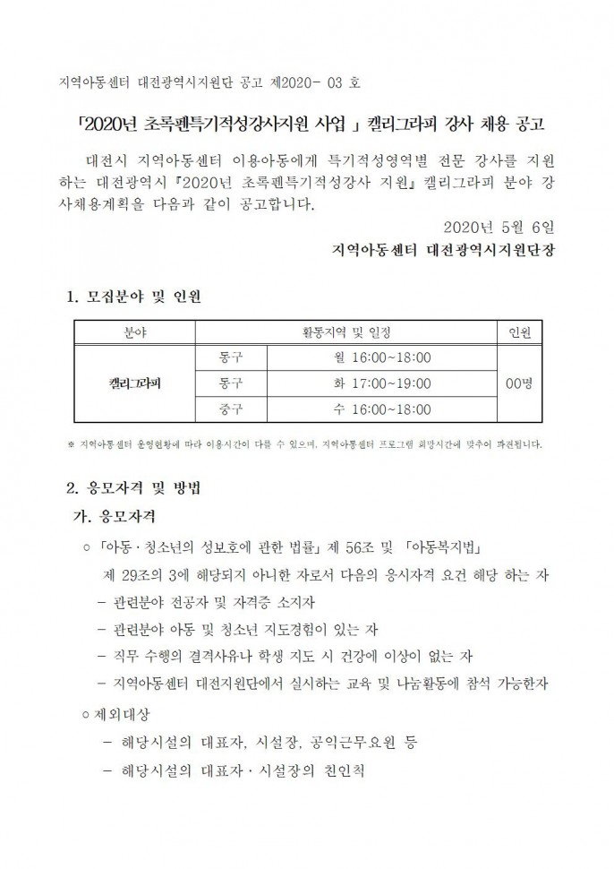 (지역아동센터) 2020 초록펜특기적성강사지원…