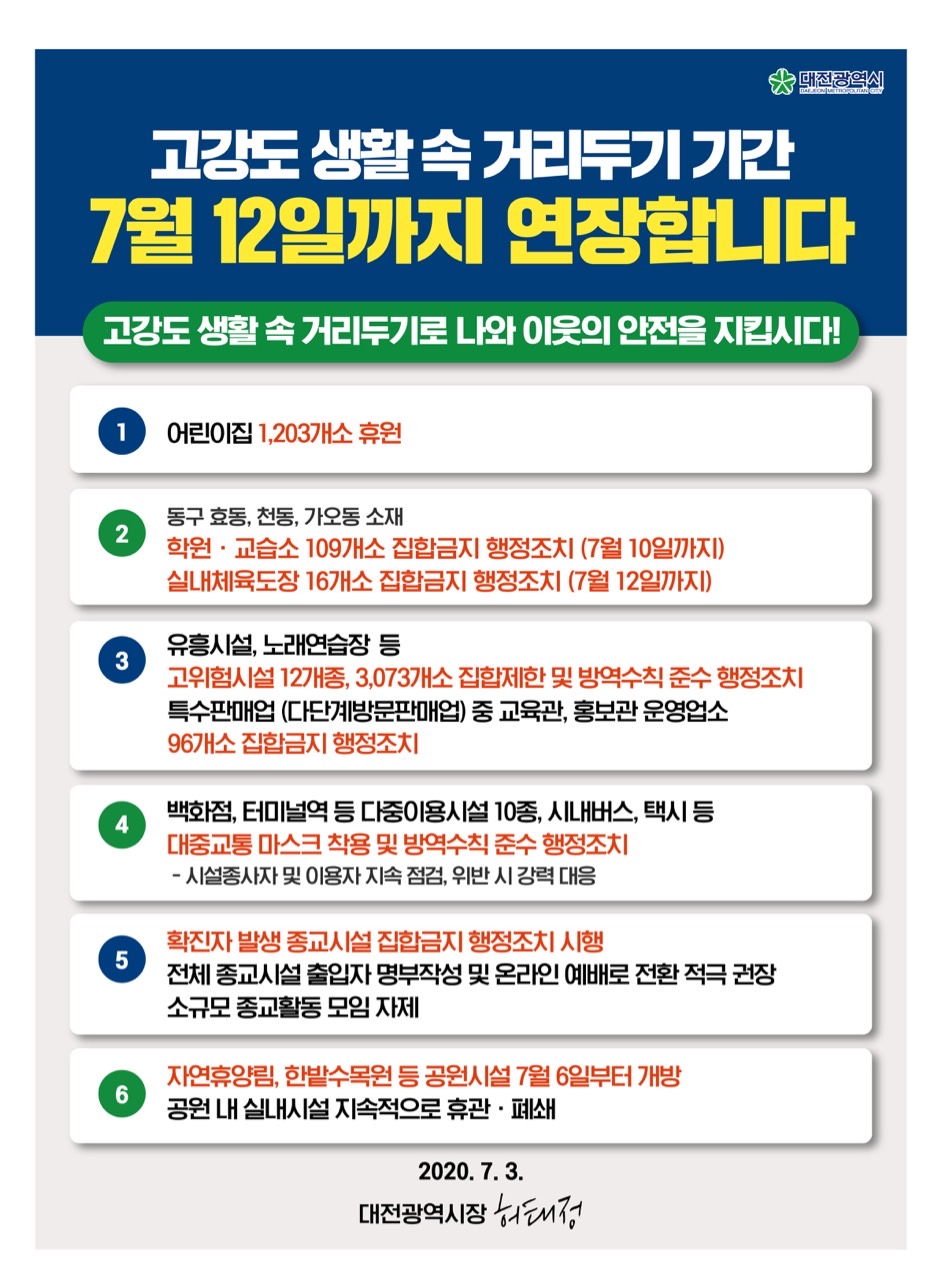 [공지] 코로나19 사회적 거리두기 2단계 격상에…