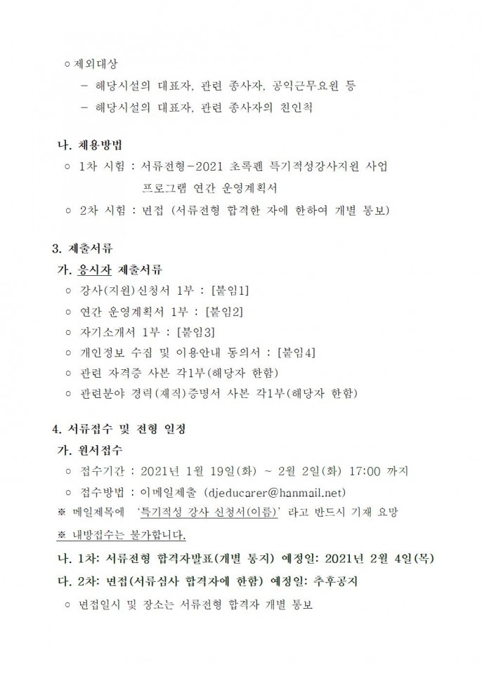 2021 초록펜 특기적성강사 지원 사업 강사…