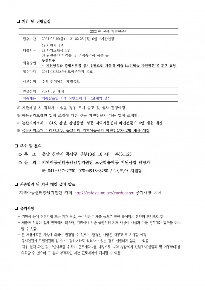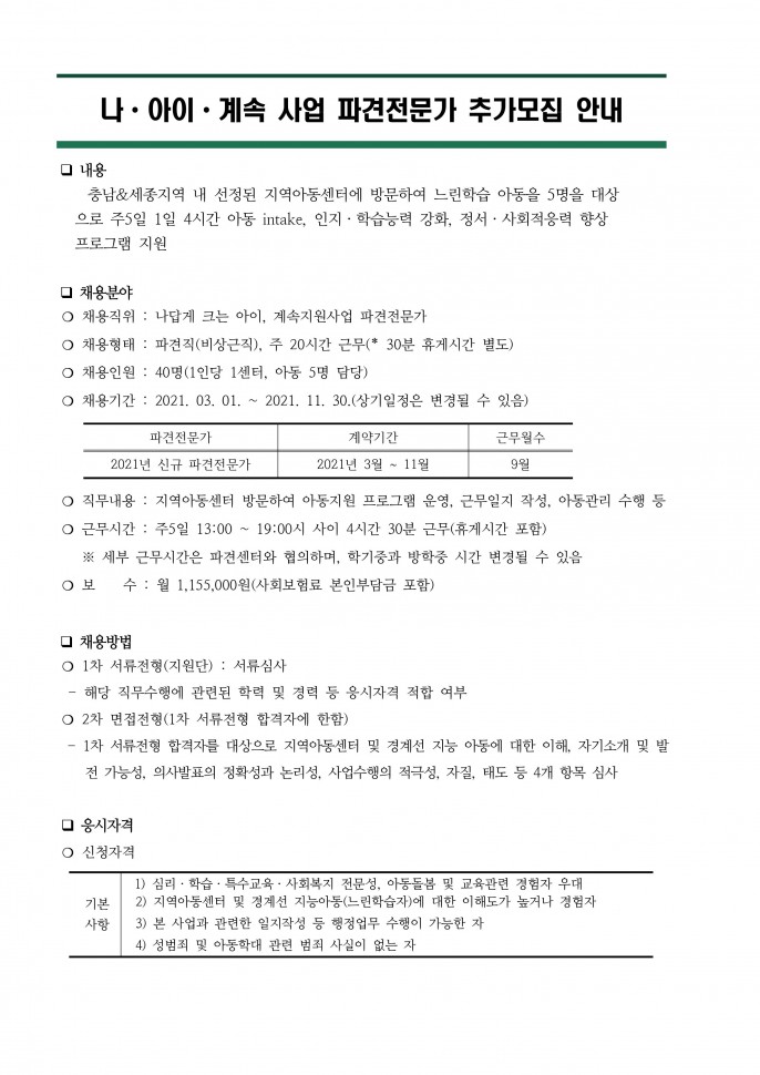 [채용] 지역아동센터 대전지원단 직원채용…