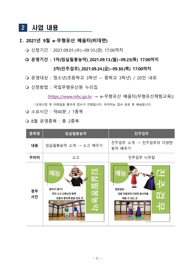 [전통문화마을] 2021 무형유산 체험교육 9월 프로그램 신청 안내