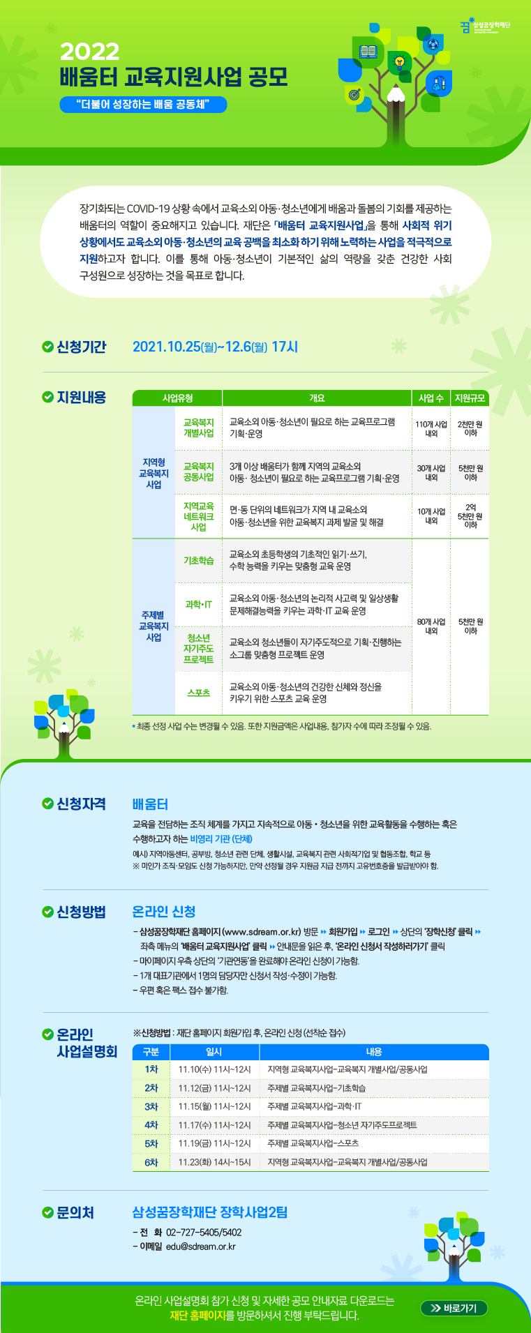 [삼성꿈장학재단] 2022 배움터 교육지원사업 공모 안내