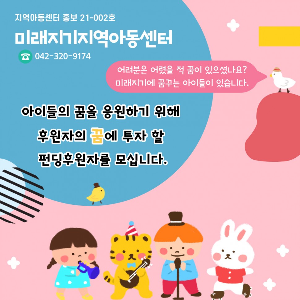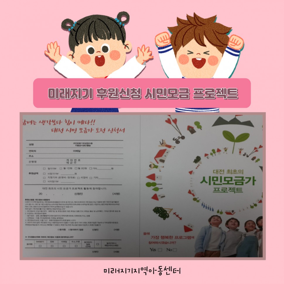 (미래지기지역아동센터) 아이들의 꿈을 응원하기 위해 후원자의 꿈에 투자할 펀딩후원자를 모십니다.