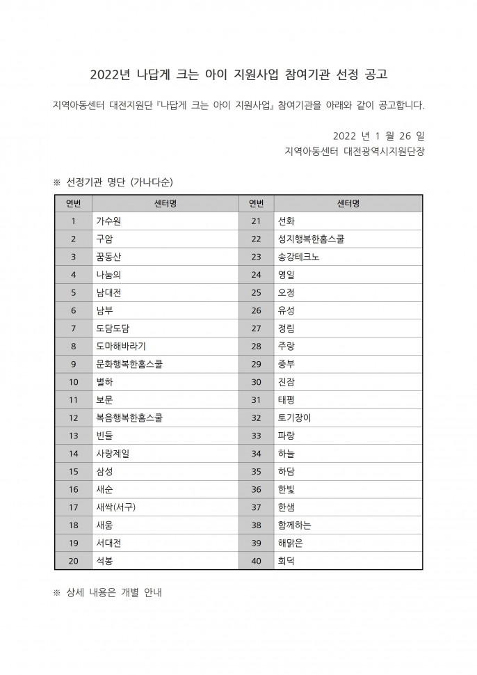 [채용결과] 지역아동센터 대전지원단…