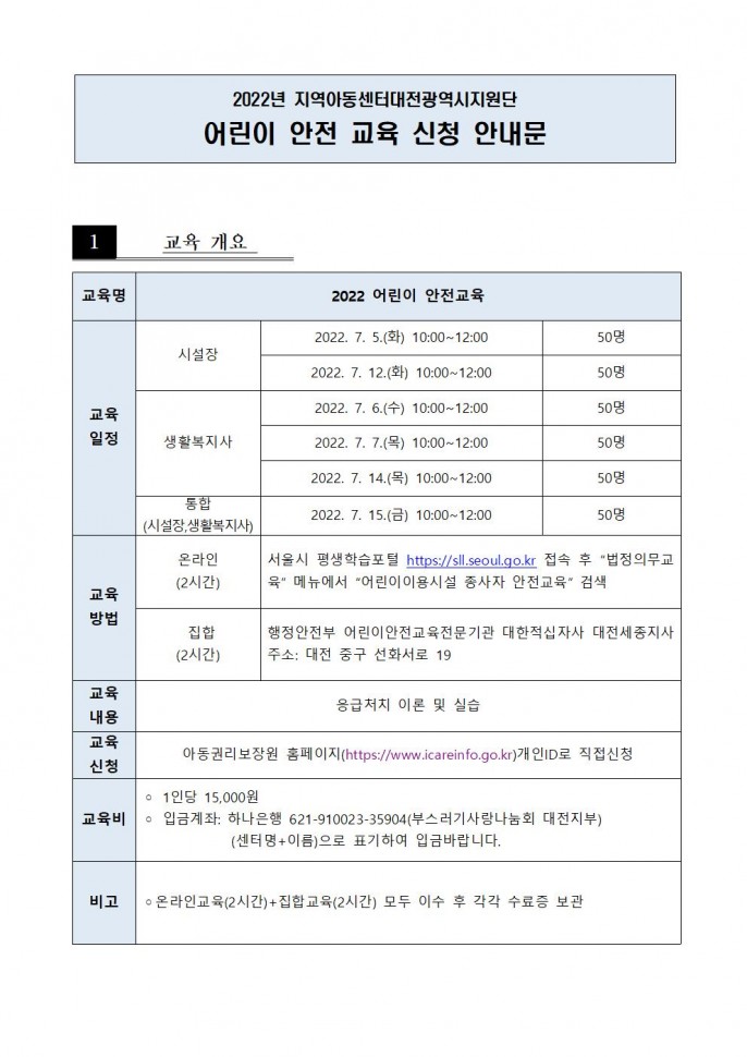 2022 어린이안전교육 신청 안내