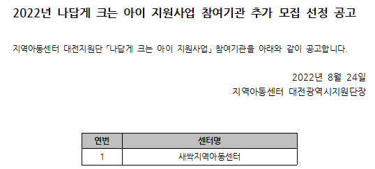 [공고]나답게 크는 아이 지원사업 참여기관…