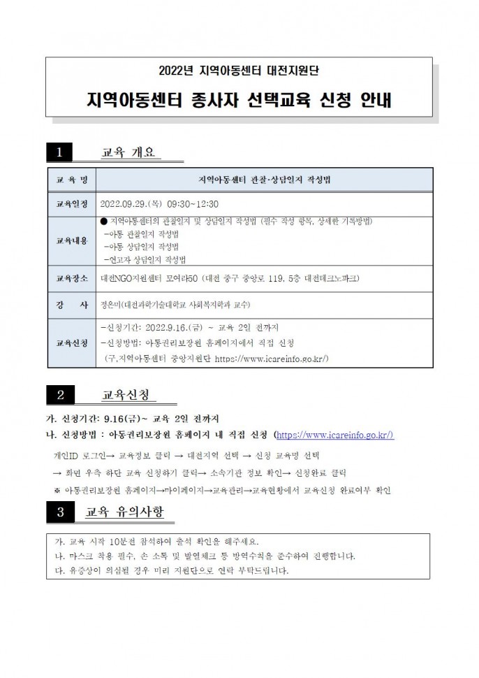 [선택] 9월 종사자 선택교육 신청 안내