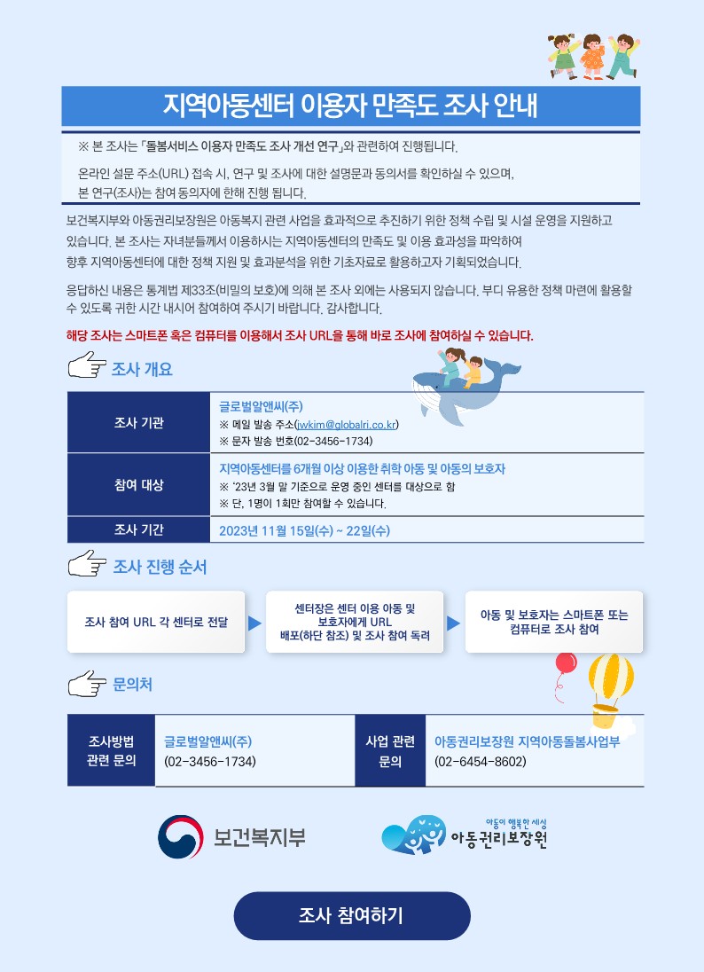 2023년 지역아동센터 이용자 만족도 조사 안내입니다.