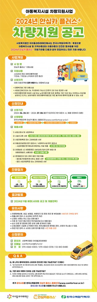아이들과미래재단에서 진행하는 2024년 한국수력원자력 안심카 플러스 차량지원사업을 아래와 같이 안내드립니다.