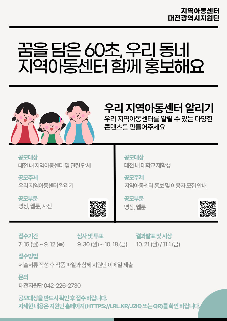 2024년 우수 콘텐츠 공모전 꿈을 담은 60, 우리 동네 지역아동센터 함께 홍보해요를 아래와 같이 안내하오니 많은 관심과 참여바랍니다.