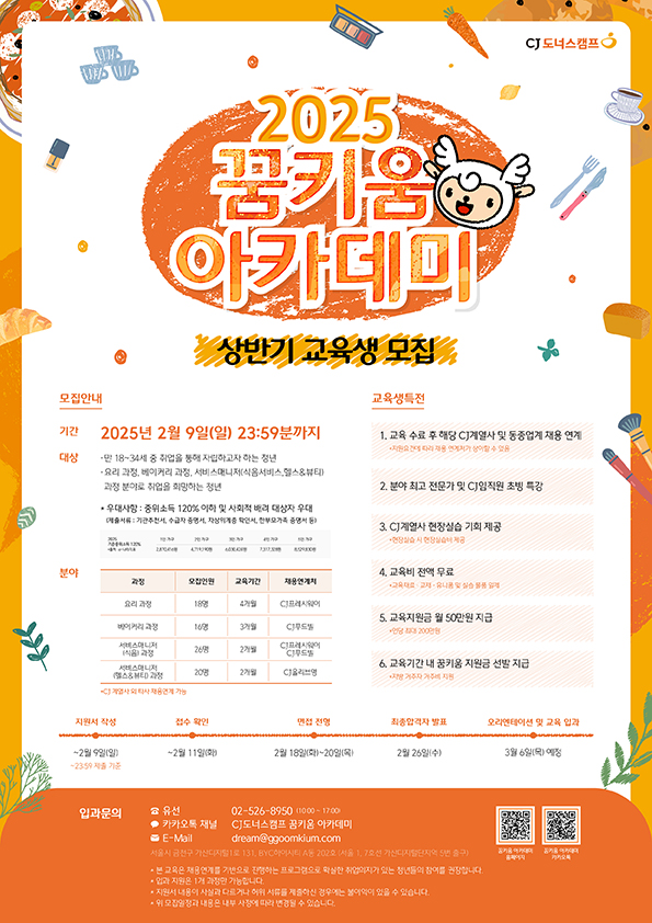 CJ도너스캠프 꿈키움아카데미 상반기 교육생 모집 안내