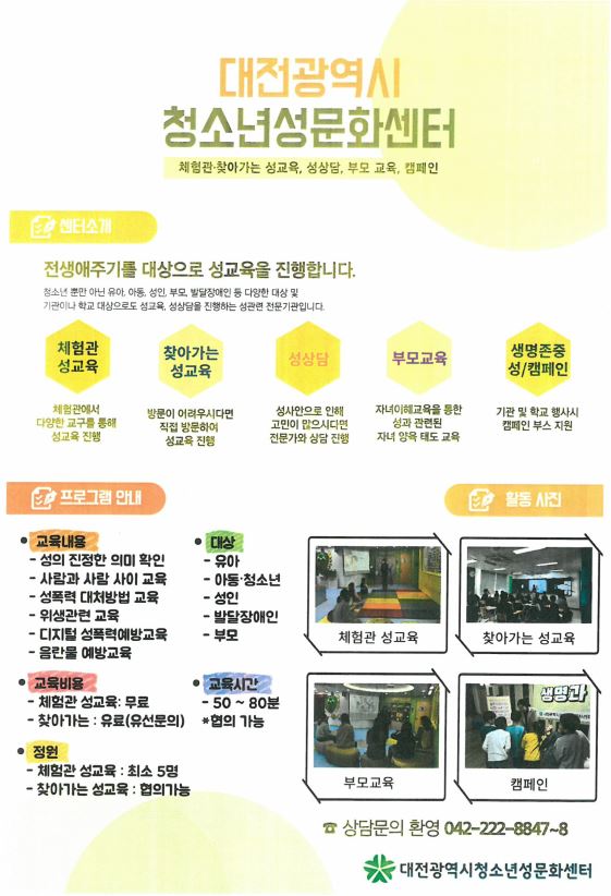 대전광역시청소년성문화센터에서 아동청소년의 긍정적인 성가치관 및 건강한 성문화를 형성을 위하여