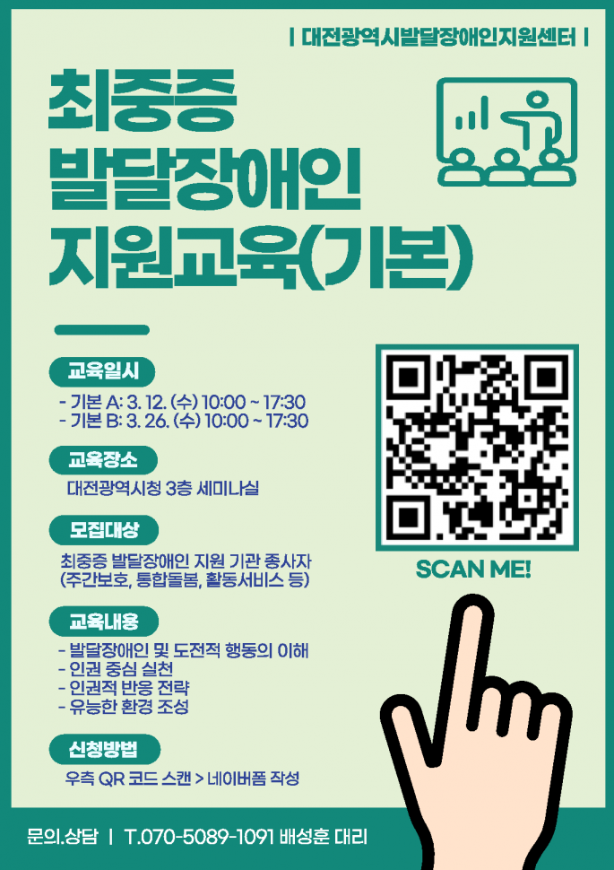 대전광역시발달장애인지원센터에서 실시하는 「2025년 최중증 발달장애인 지원 교육(기본교육)」을 다음과 같이 안내 드리오니 많은 관심과 참여 바랍니다.