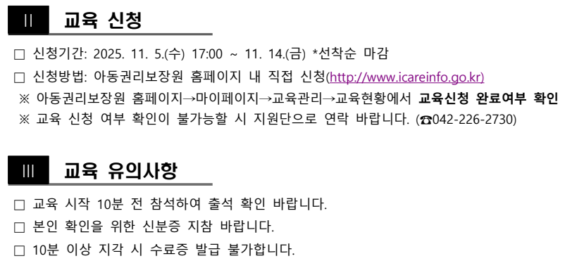 2025년 지역아동센터 종사자 선택교육 「연·월간사업계획서 작성법」을 다음과 같이 진행하오니, 많은 관심과 신청 바랍니다. 감사합니다.