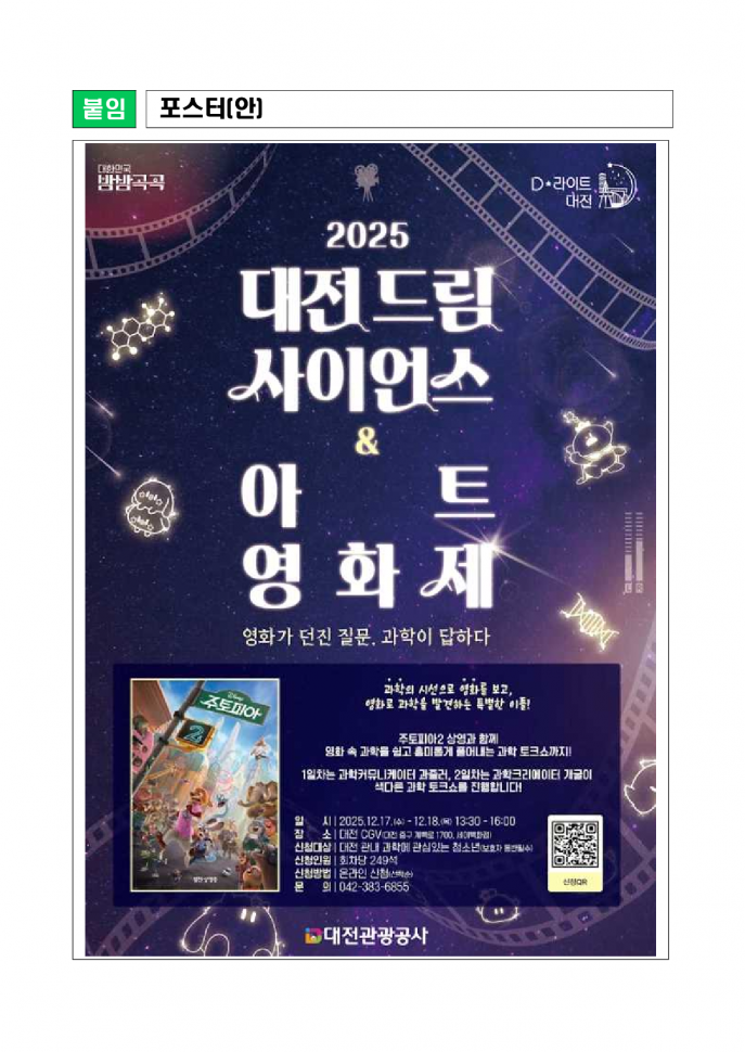 1. 행사명: 2025년 대전 드림 사이언스&아트 영화제