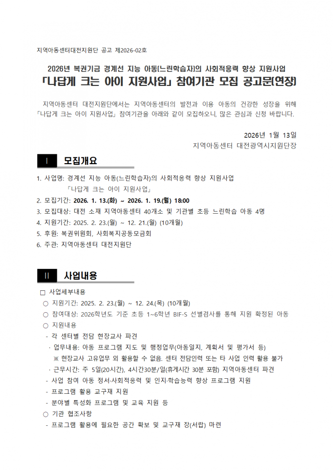 [공지] 2026 나답게크는아이 현장교사 채용 공고(연장)