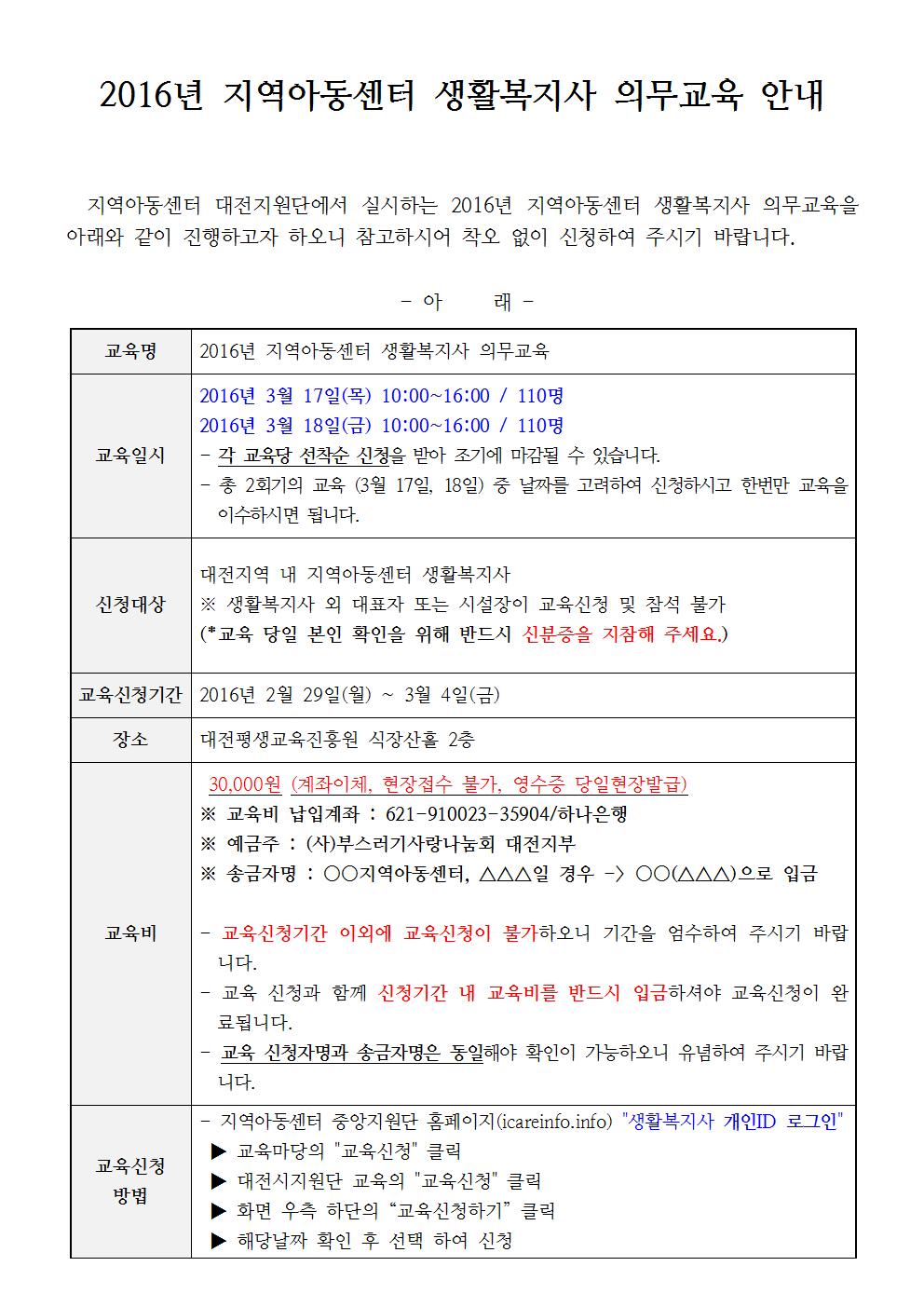 [] 2017년 종사자 의무교육(필수) 사전 안내문